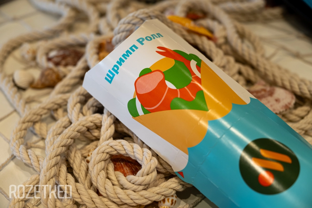 - «Шримп Ролл» — креветки в хрустящей панировке, свежий салат «Айсберг» в пшеничной лепёшке, заправленной специальным соусом, теперь без лука