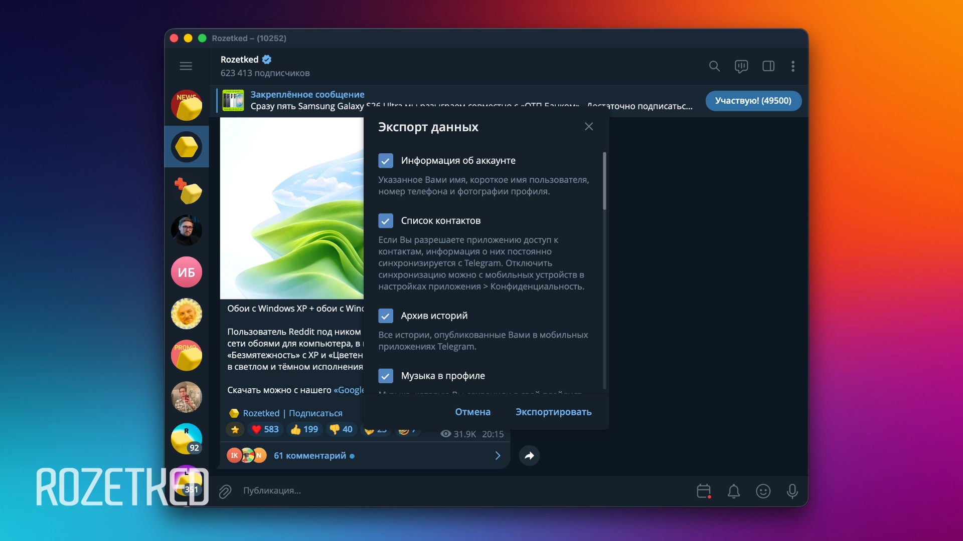 Иногда проще сохранить только отдельные переписки. В Telegram Desktop есть и такая опция: