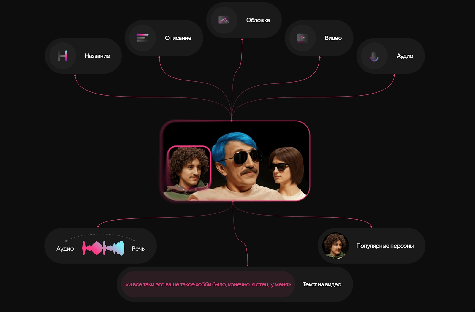 Чтобы подобраться к решению, сначала нужно определить, какие компоненты составляют любую контентную единицу: визуальный ряд, речь, тексты, заголовки, описания, аудио. Всё это называют модальностями.