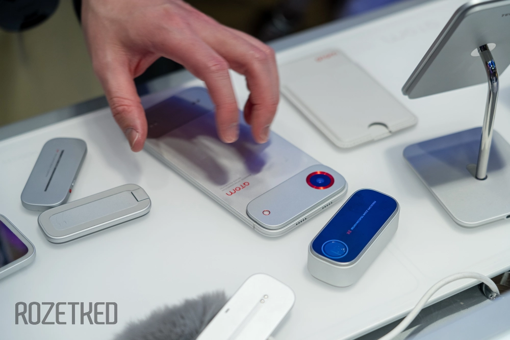Аксессуары крепятся к смартфону на магнитах, а сопрягаются с ним через Wi-Fi, Bluetooth и mmWave. Модель Moda выполнена в тёмной расцветке, а Atom — в светлой серебристой.