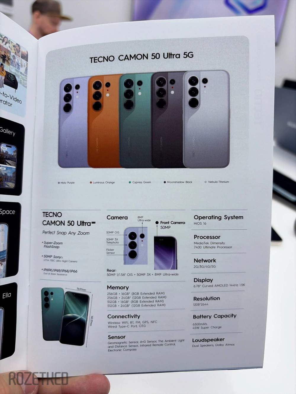 Tecno Camon 50 Pro и 50 Ultra получили экран на AMOLED на 6,78 дюйма с частотой 144 Гц, чипсеты MediaTek Helio G200 Ultimate (у Pro) и Dimensity 7400 Ultimate (у Ultra). В блок камер добавили «телевик» на 50 Мп с зумом 3x (до 60x при помощи SuperZoom), а фронтальная камера у «Ультры» на 50 Мп. В качестве основного сенсора выступает Sony LYTIA 700C с оптической стабилизацией изображения.