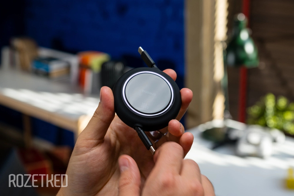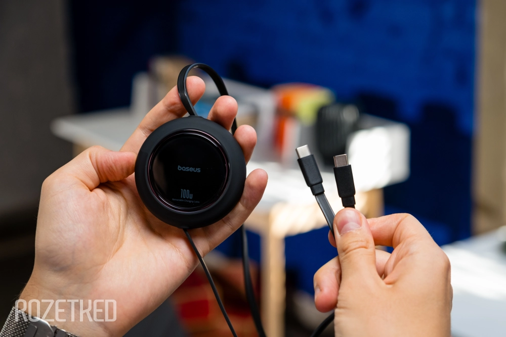 В продолжение темы зарядок: кабели для этого тоже нужны. И скручивать-раскручивать их туда-сюда, особенно если вы где-то в пути, не всегда удобно. Поэтому у Baseus есть гениальное решение в виде самоскручивающейся «рулетки». Это их фирменная разработка.