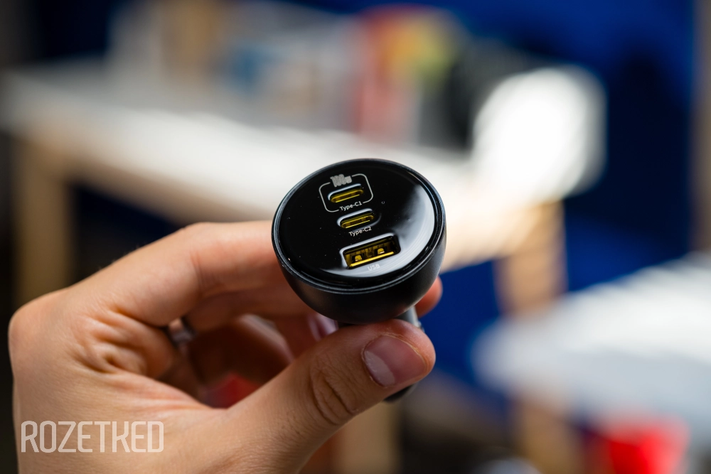 Для тех, кто путешествует в машине, есть тоже классный вариант. Адаптер в прикуриватель, который суммарно выдаёт 152 Вт! Да, если вы работаете в машине, он может заряжать ваш ноутбук. Тут два порта USB-C, один из которых выдаёт 100 Вт, и один порт USB-A. Адаптер компактный, есть круговая подсветка, чтобы в темноте найти порты. Однозначно топ, стоил в Китае около двух тысяч рублей.