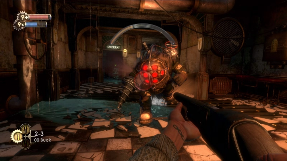 Бывшие творцы свихнулись из-за наркотика АДАМ, которым приходится пользоваться и главному герою, тем самым улучшая себя и приобретая сверхспособности. Но пострелять тоже придётся — и много. BioShock ставит игрока перед моральной дилеммой, созвучной с принципом утопии Восторга — брать всё и становиться лучше или же брать меньше, жертвуя собой, но при этом спасать жизни.