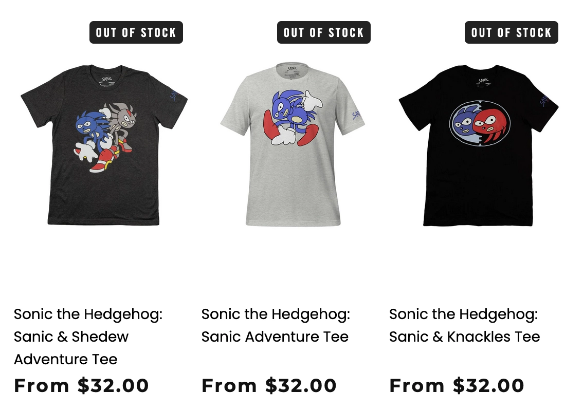 Вот что возможно купить, так это официальные футболки от SEGA с Саником и другими плохо нарисованными маскотами SEGA, известными по мемам. Правда, выпустили всего три вида футболок ограниченным тиражом и купить их можно было только 1 апреля — сейчас первоапрельской коллекции уже нет в наличии.