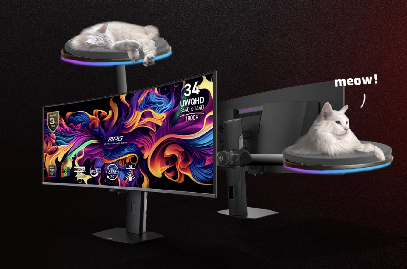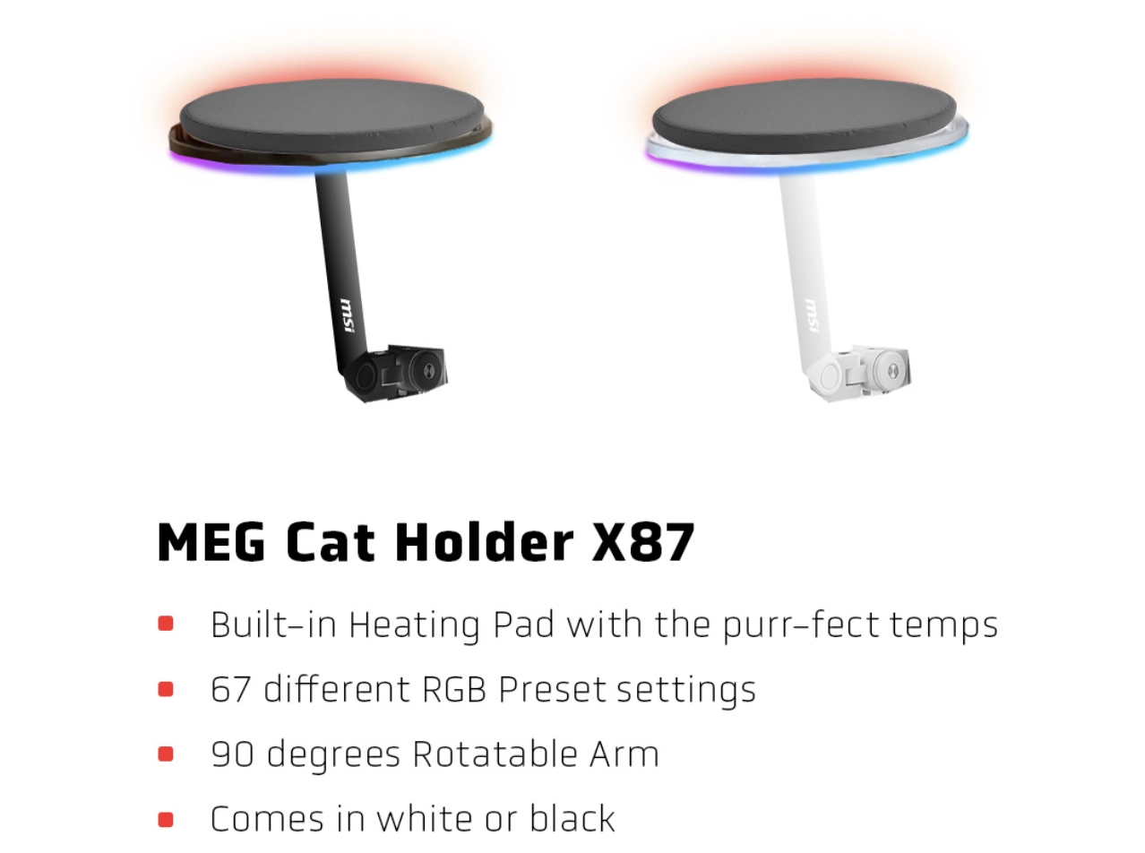 К сожалению, не получится купить и первоапрельский продукт от MSI — «держатель для кота», который крепится к монитору.