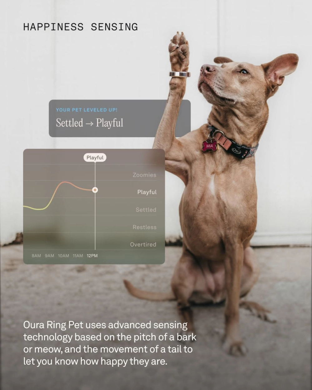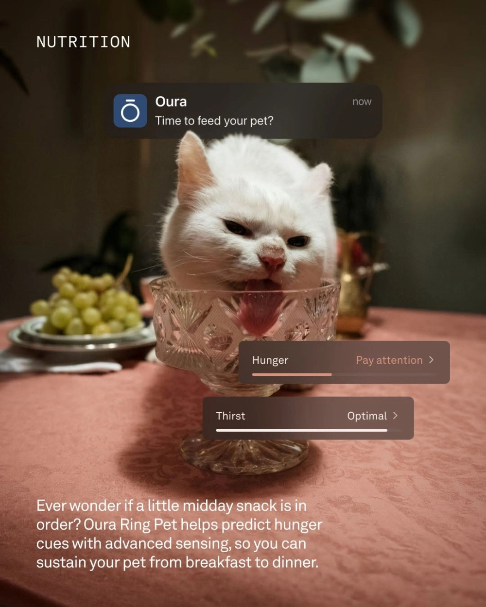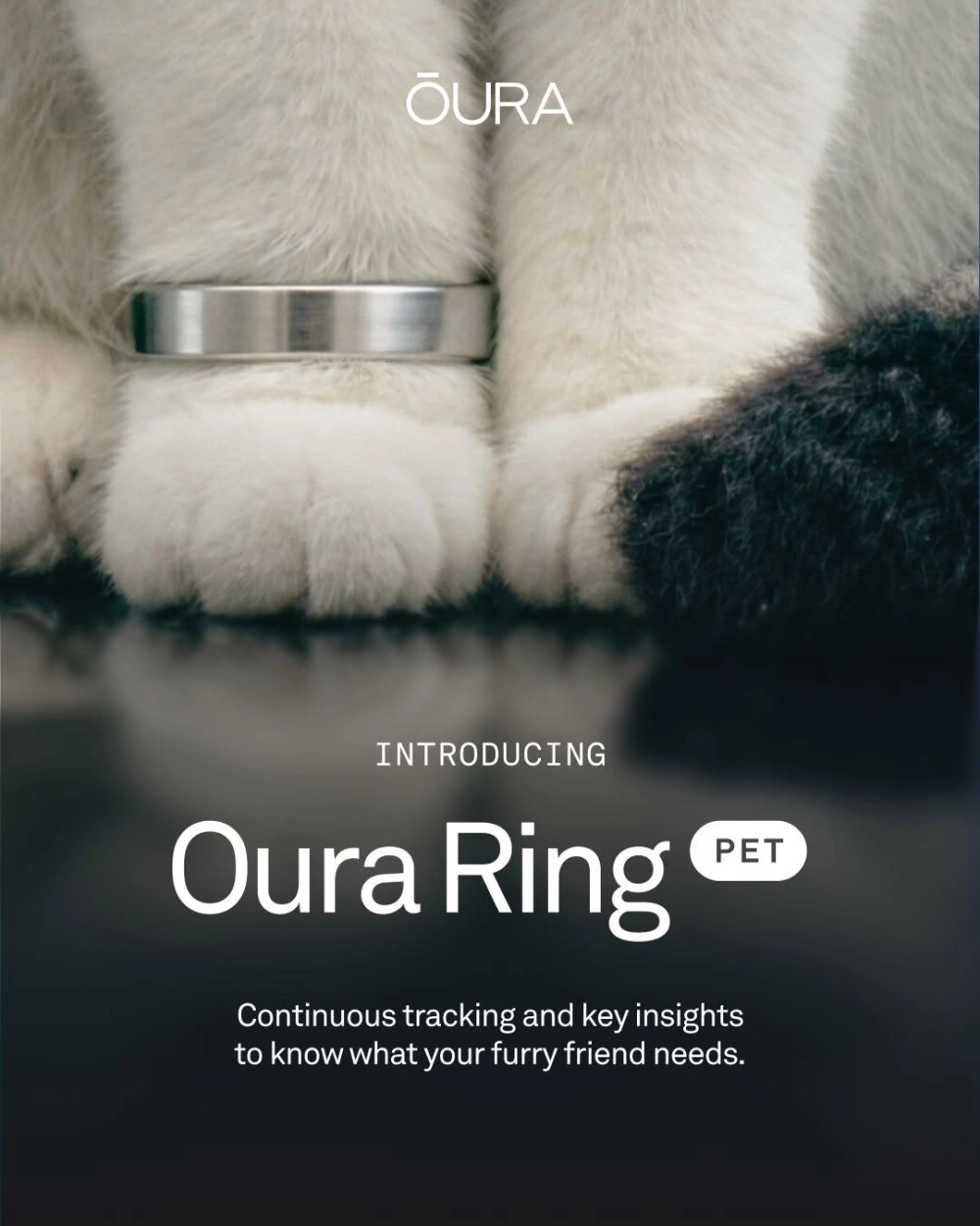 Ещё один несуществующий, но интересный аксессуар для домашних питомцев показала Oura. Компания, известная своими умными кольцами, «сделала» смарт-кольцо для кошек и собак.