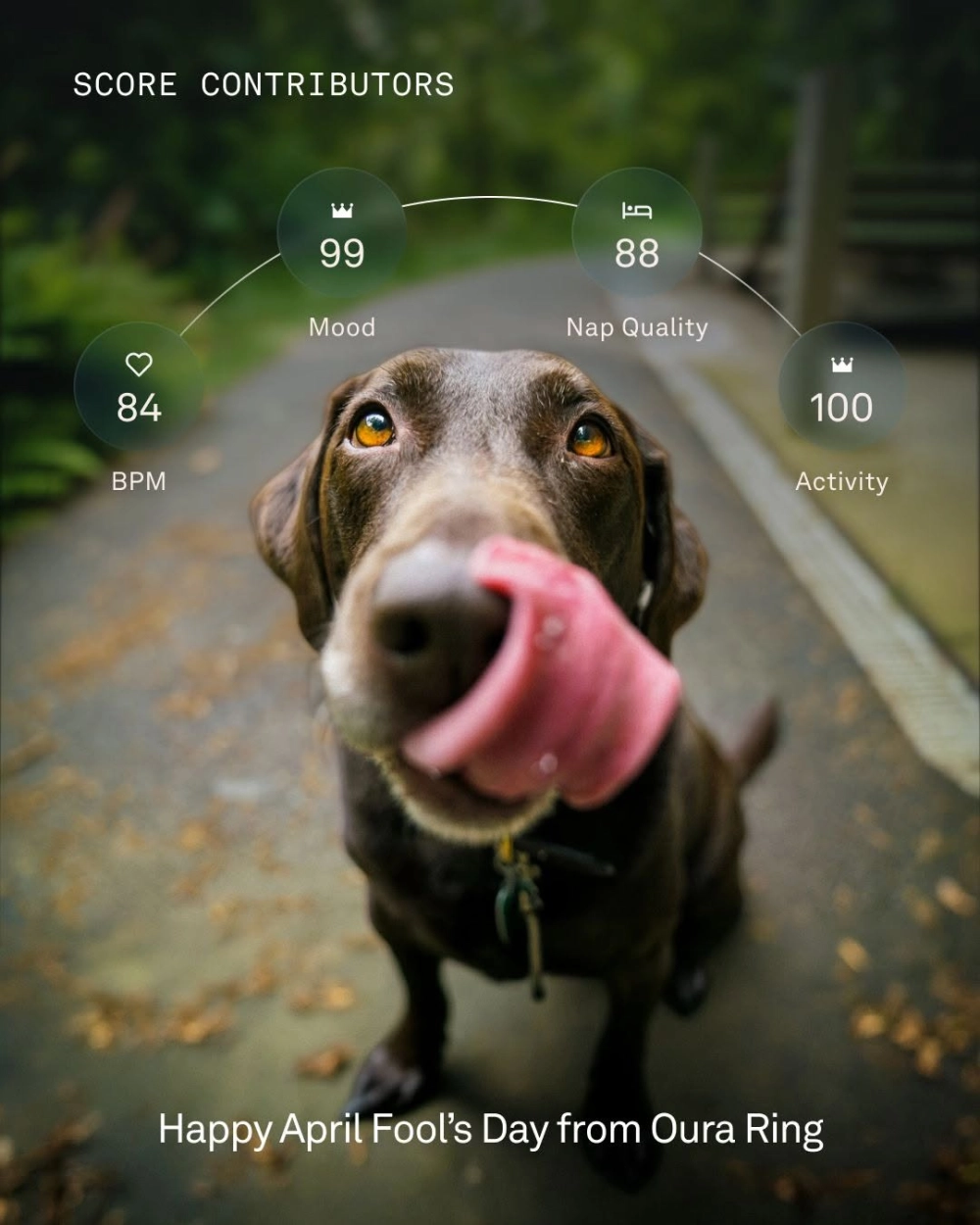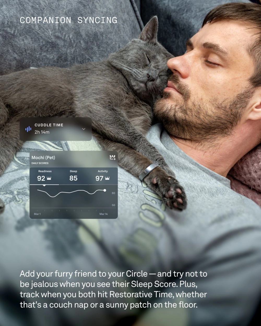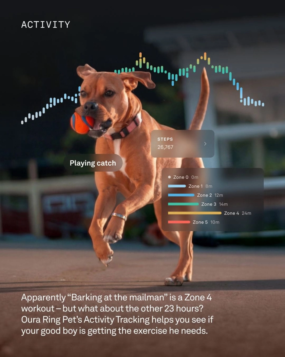 Ещё один несуществующий, но интересный аксессуар для домашних питомцев показала Oura. Компания, известная своими умными кольцами, «сделала» смарт-кольцо для кошек и собак.