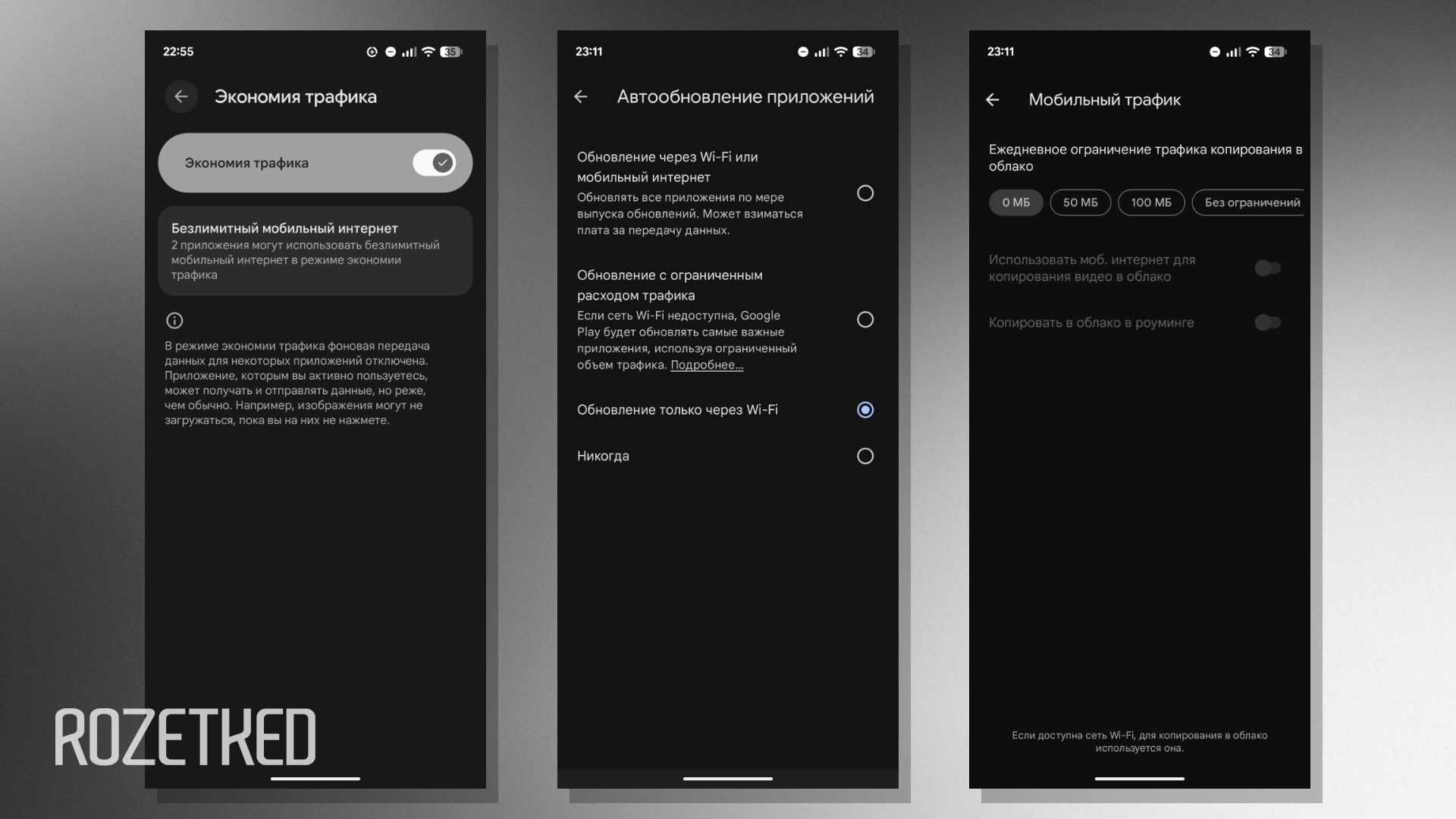 1. В разделе «Настройки» → «Сеть и интернет» → «Экономия трафика» включите опцию «Экономия трафика». Она отключает фоновую активность приложений.
