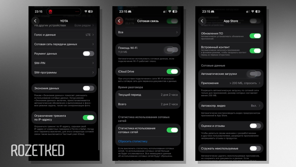 В iOS статистика показывает расход не за календарный месяц, а с момента последнего ручного сброса. Информация находится в приложении «Настройки» → «Сотовая связь», по умолчанию показывается статистика с той SIM-карты, которая используется для передачи данных.