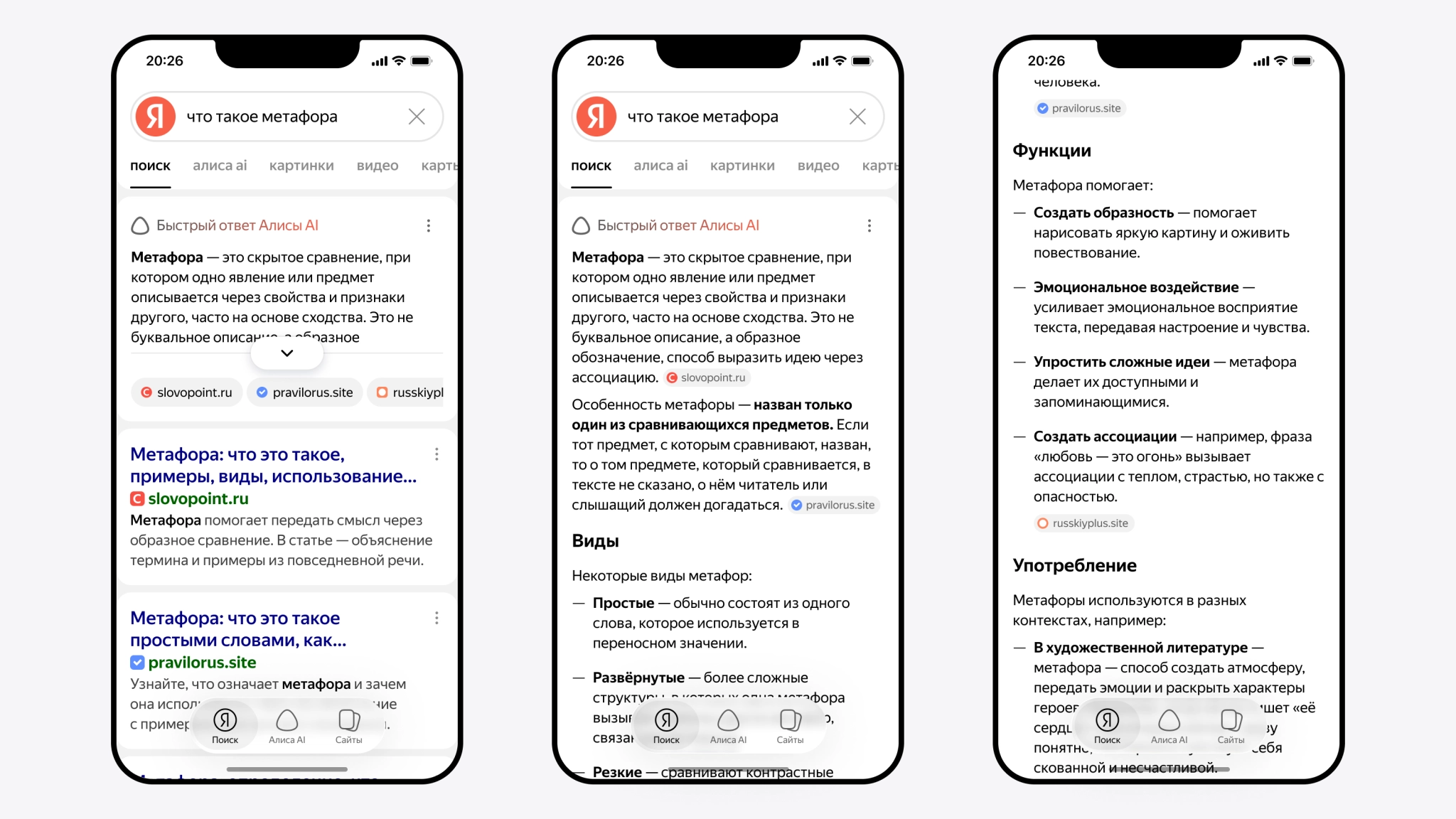 Переключаться между диалогом с «Алисой AI», быстрыми ответами и стандартным поиском можно в любой момент.