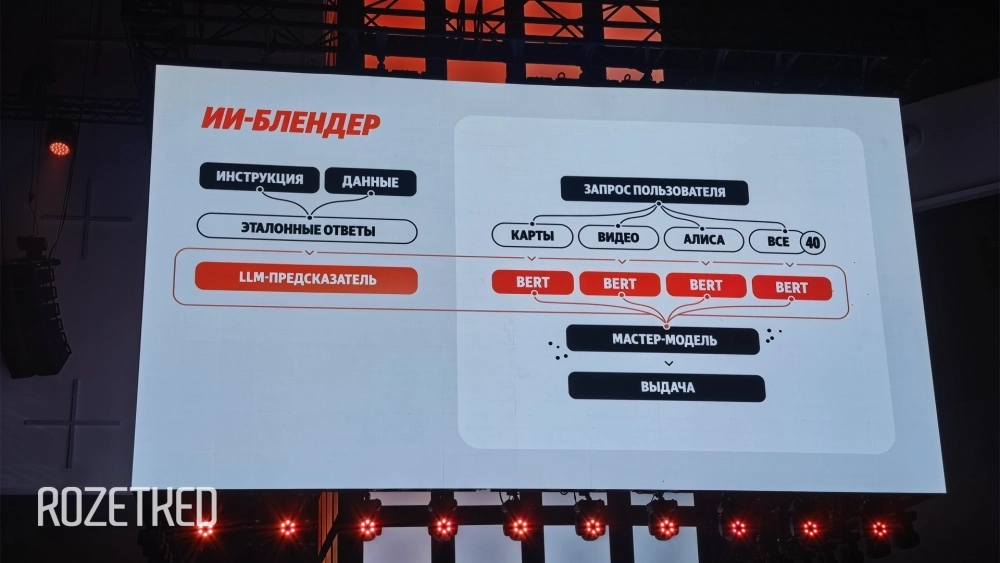 В «Поиск» добавили технологию «ИИ-блендер». Это алгоритм на основе LLM, который отбирает под каждый пользовательский запрос набор тематических блоков: ссылки, картинки, видео, графики, прогноз погоды или котировки валют.