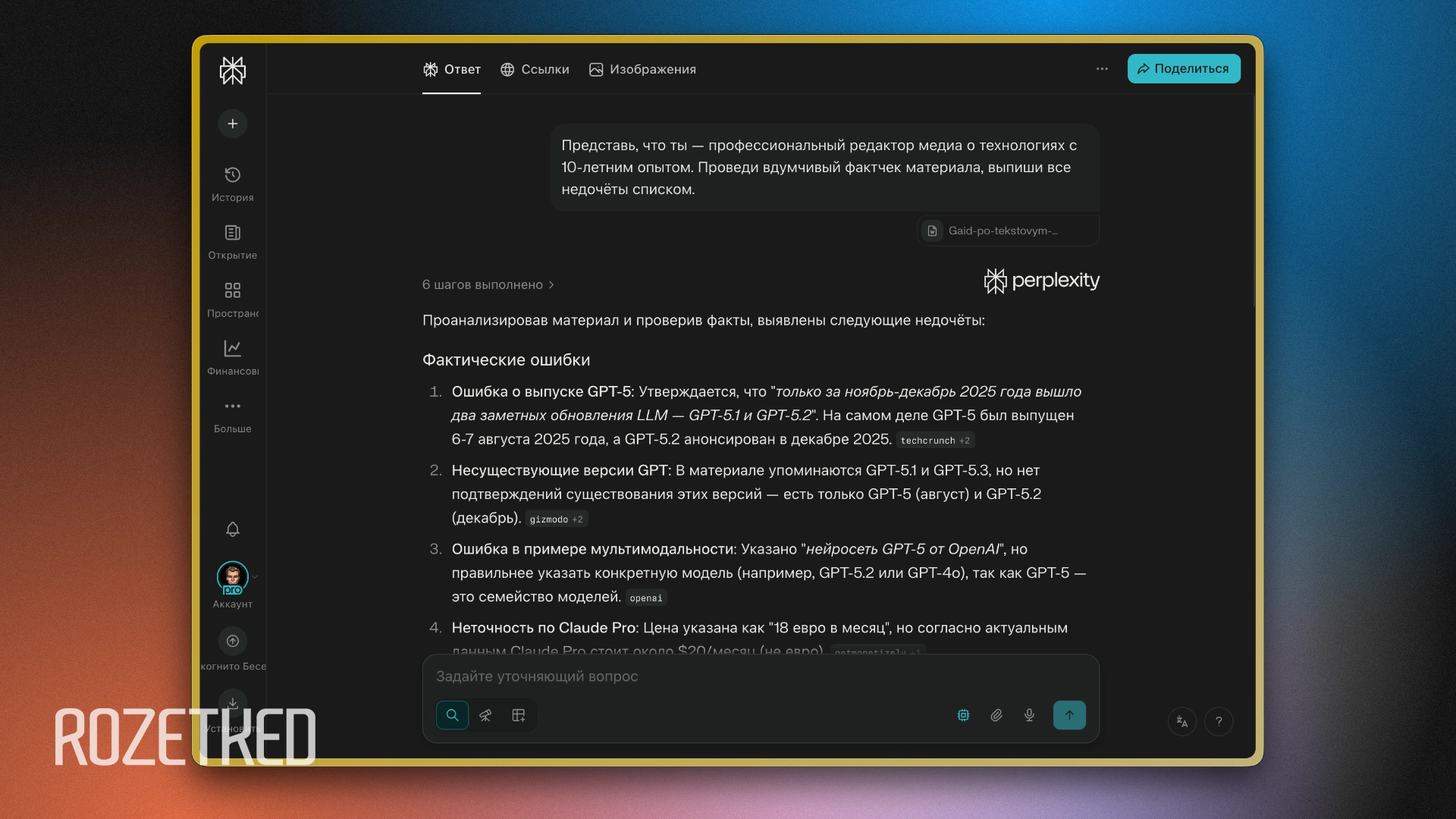 | Perplexity Sonar | н/д | 21,1%** | н/д | н/д | 0 |