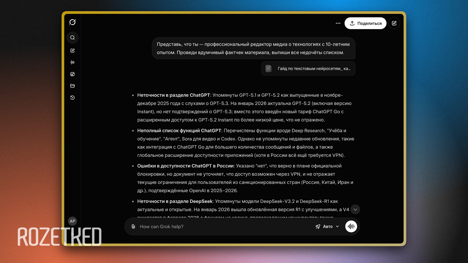 | Grok | ❌ | ✅ | ✅ | 🟡 | 2,5+0=2,5 |