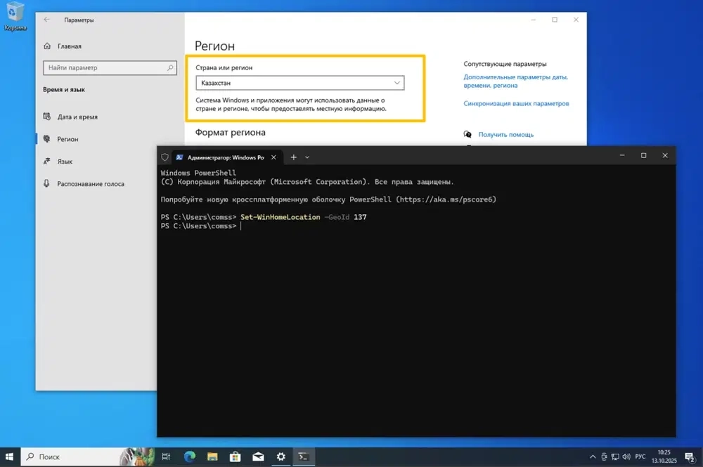 - Второй способ, через команду в PowerShell: Set-WinHomeLocation -GeoId 137