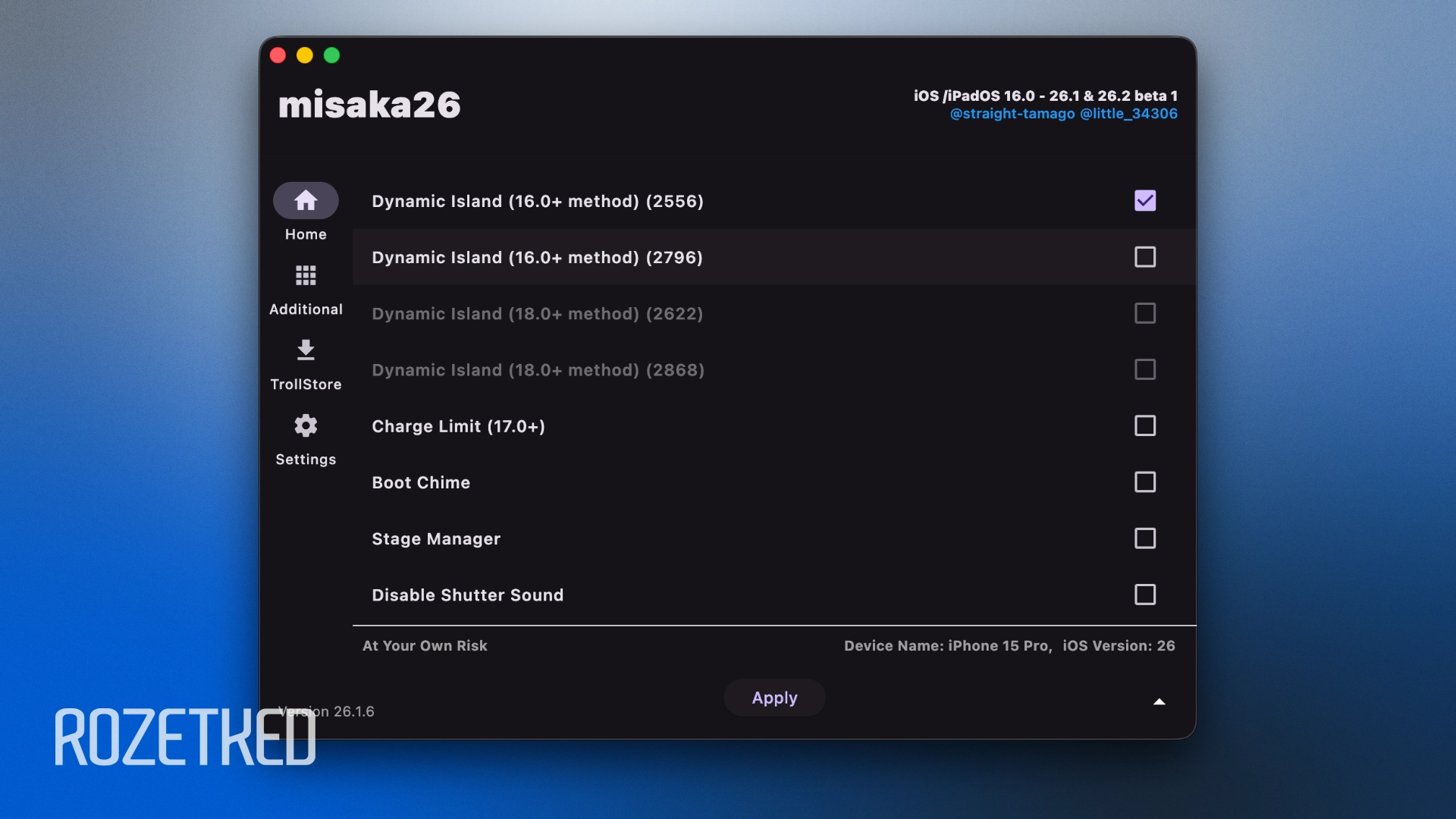 - Появится список доступных к активации функций. Чтобы запустить iPadOS-мультиоконность, отметьте галочкой пункт TrollPad (iPad Multitasking).