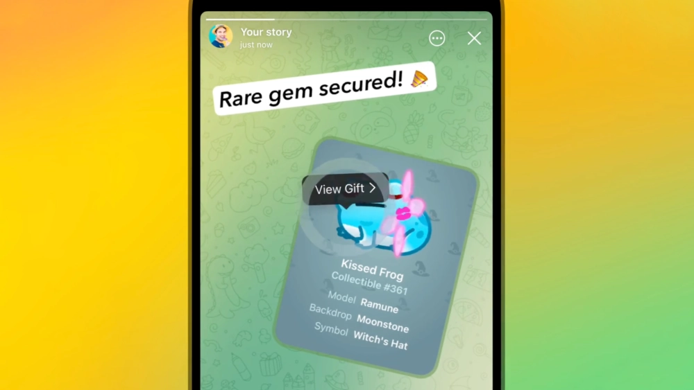 Публикация подарков в историях. Получатели коллекционных гифтов могут похвастаться через историю, где отобразится не только сам подарок, но и «редкие характеристики произведения цифрового искусства».