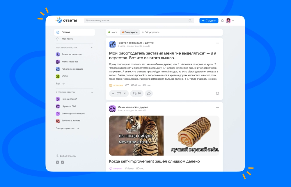Перед публикацией можно выбрать, в каком тематическом пространстве стоит разместить пост. Пользователи могут подписываться на интересующие пространства: вместе с этим в новой версии «Ответов» появилась персонализированная лента.