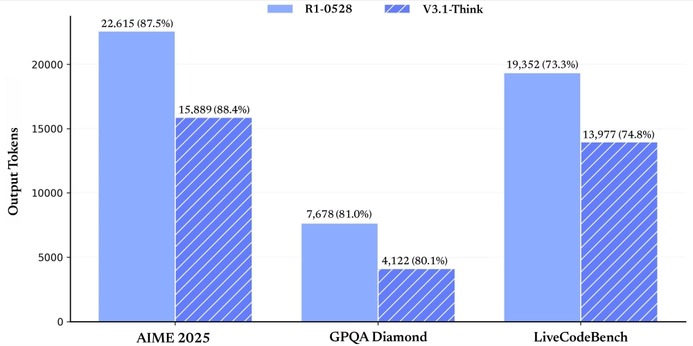 Китайская компания DeepSeek выпустила обновлённую версию флагманской модели — V3.1. Она работает в двух режимах: «базовом» и «рассуждающем» (V3.1-Think). По словам разработчиков, в режиме рассуждений модель отвечает быстрее R1, тратя меньше токенов на поиск решения.