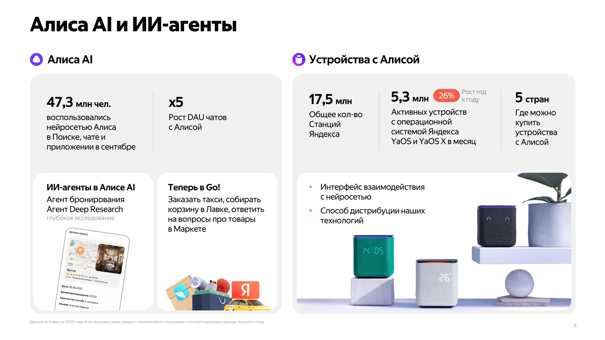 В III квартале 2025 года люди воспользовались разными нейросетями «Яндекса» в общей сложности более 8 млрд раз: среди них не только «Алиса AI», но и, например, картиночная Alice AI ART, которая помогает создавать изображения и видео в «Шедевруме».