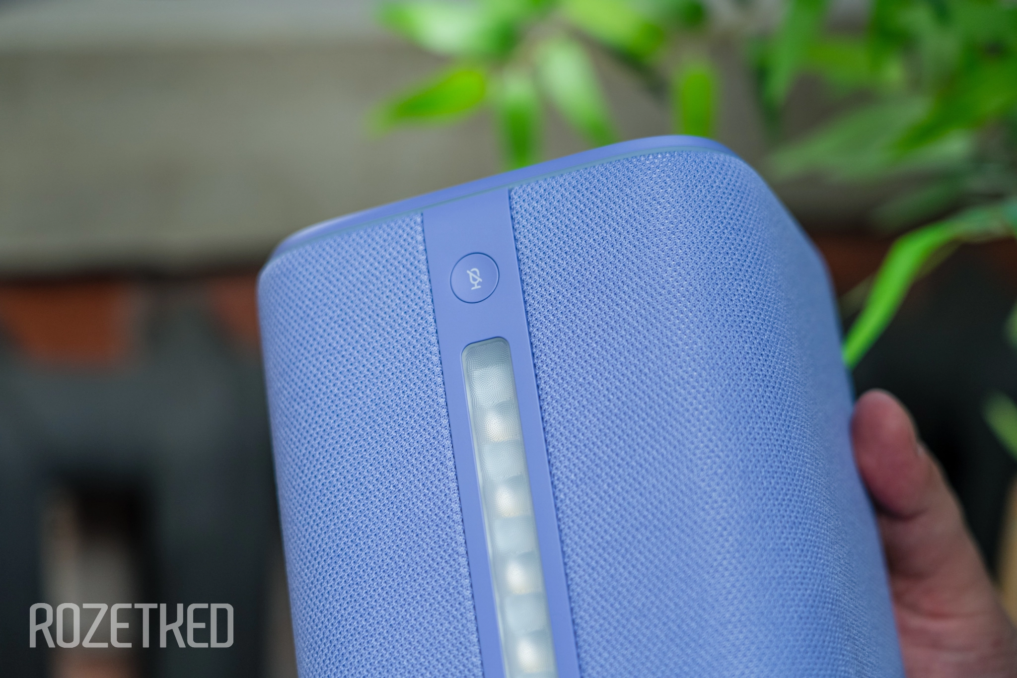 Управляется подсветка голосом, через «Дом с Алисой» или рельефной кнопкой на верхней панели колонки.