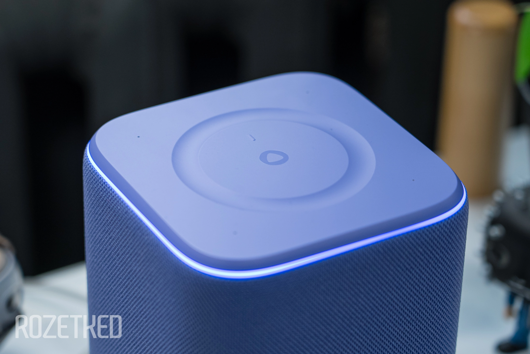 - сенсорной кнопкой можно управлять «Алисой» и воспроизведением: если её нажать и удержать, можно задать «Алисе» вопрос, если просто нажать — запустить или остановить музыку или прервать ответ «Алисы»;