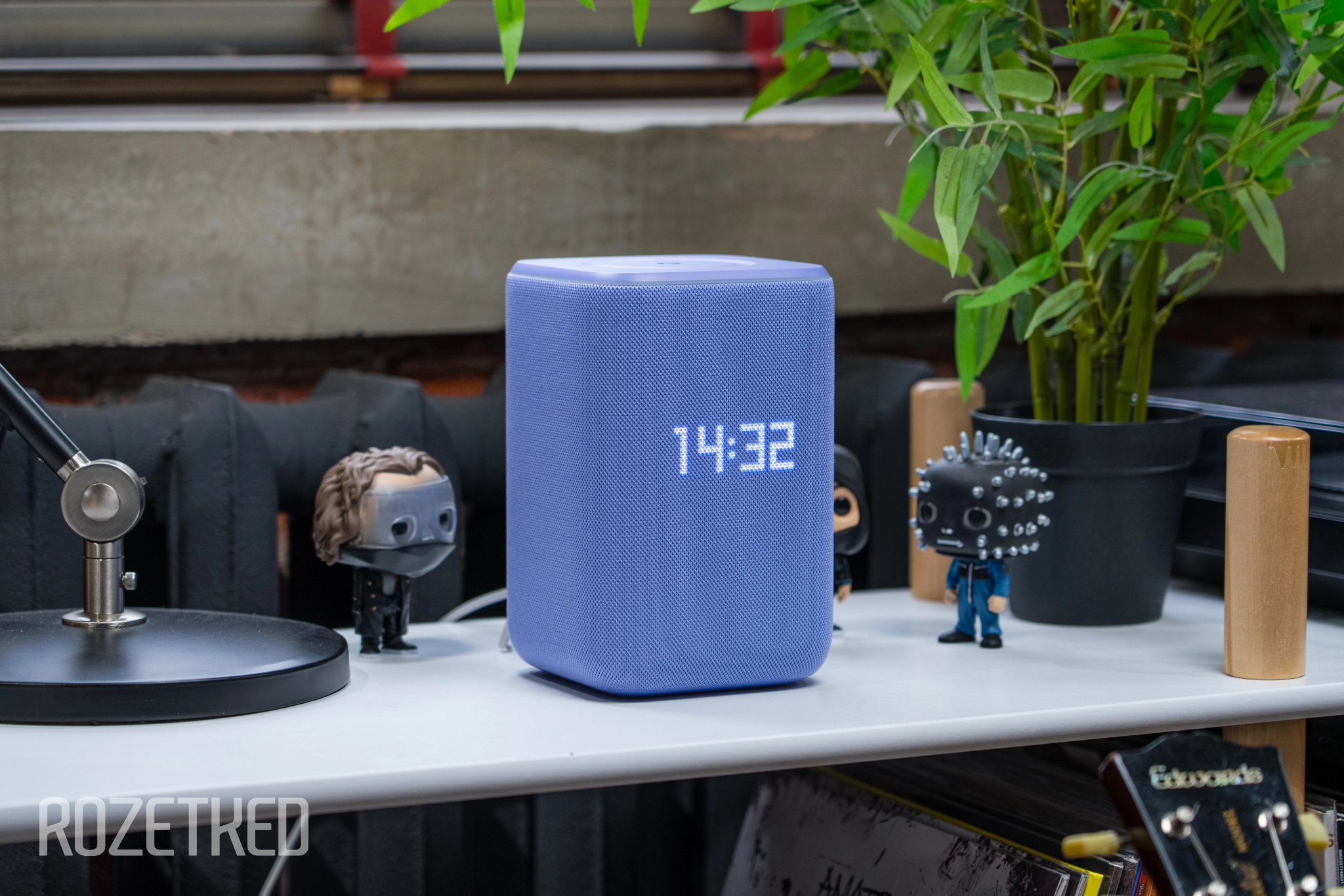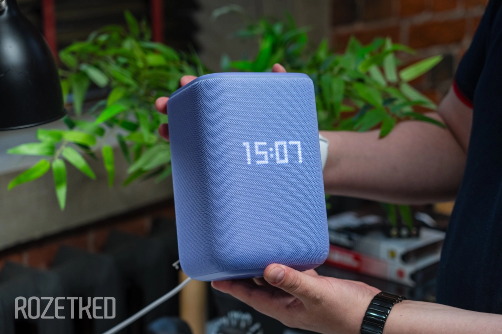 Первое, на что обращаешь внимание, — это, конечно, обновлённый дизайн. Общая идея осталась той же, что у других «Станций»: колонка снова обтянута тканью и снова вписывается в любой интерьер.