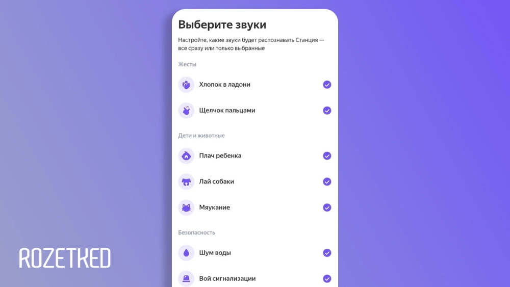 Ну и новая фишка — детектор шумов. Колонка умеет распознавать различные источники звука, чтобы на их основе запускать сценарии умного дома. Например, можно (как в кино) похлопать в ладоши и включить свет. Также есть щелчок пальцем, плач ребёнка, шум воды, вой сигнализации, разбитое стекло, лай собаки или мяуканье.
