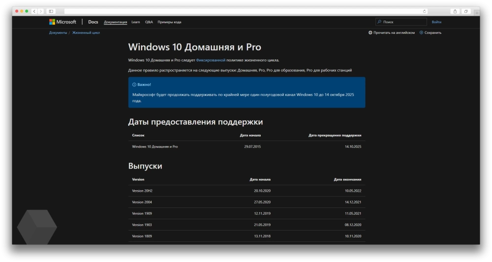 Обновление: на самом деле сообщение об окончании поддержки в 2025 году присутствовало на странице давно и отражает лишь стандартный 10-летний цикл поддержки актуальной версии Windows. Редакция Rozetked приносит извинения читателям за некорректно поданную информацию.
