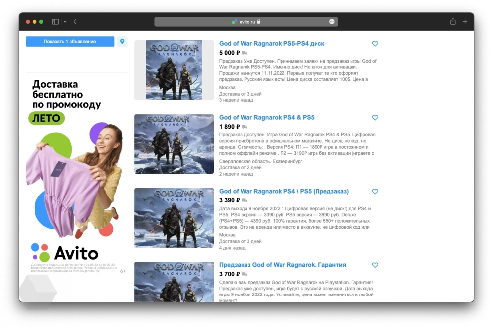 Так, на «Авито» предлагают оформить предзаказ на FIFA 23 и NHL 23 за 2-3 тысячи рублей, на God of War: Ragnarok и Call of Duty: Modern Warfare II — за 3-5 тысяч, на The Last Of Us Part I — в районе 3000 рублей. Похожие предложения «Известия» нашли на Ozon и Plati.ru.