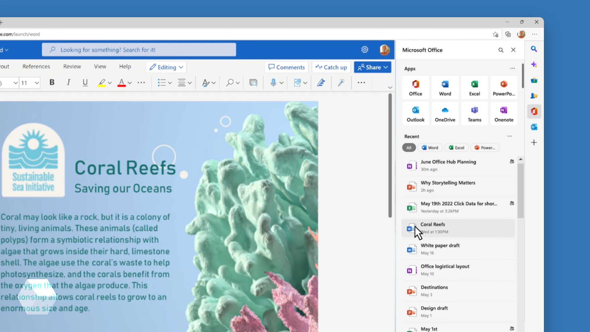 В Microsoft Edge появилось боковое меню с быстрым доступом к Outlook, Office и умному поиску