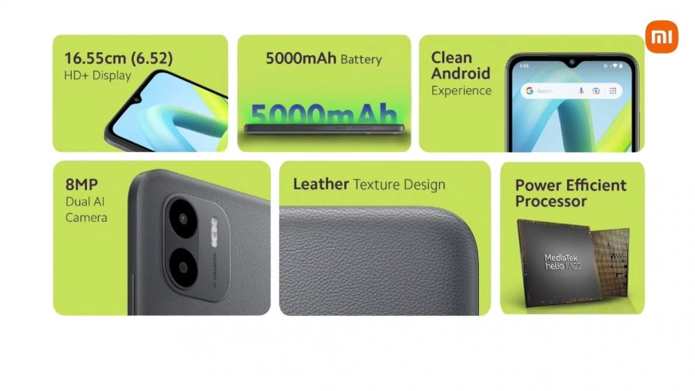 Представлен Redmi A1 — смартфон с «кожаным» задником по цене менее 5000 рублей