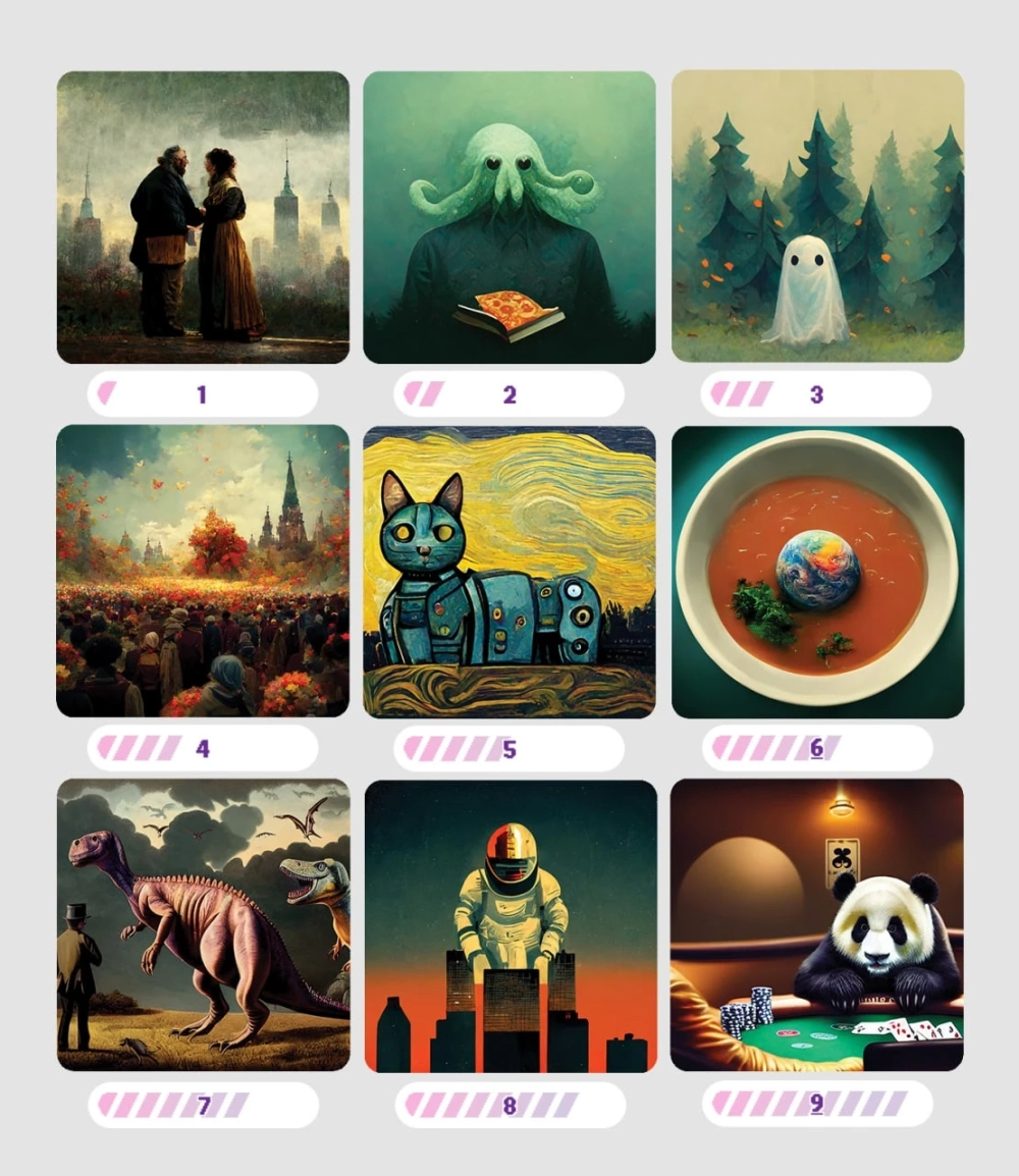 Издатель Hobby World анонсировал первую настольную игру, иллюстрации для которой были сгенерированы нейронной сетью Midjourney. Проект получил название «Я не человек».