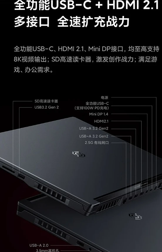 Что касается интерфейсов, в наличии полнофункциональный USB-C (100 Вт), три USB-A 3.2 Gen2, один USB-A 2.0, mini DisplayPort 1.4, сетевой порт 2.5G, HDMI 2.1, слот для SD-карты и разъём для наушников 3,5 мм.