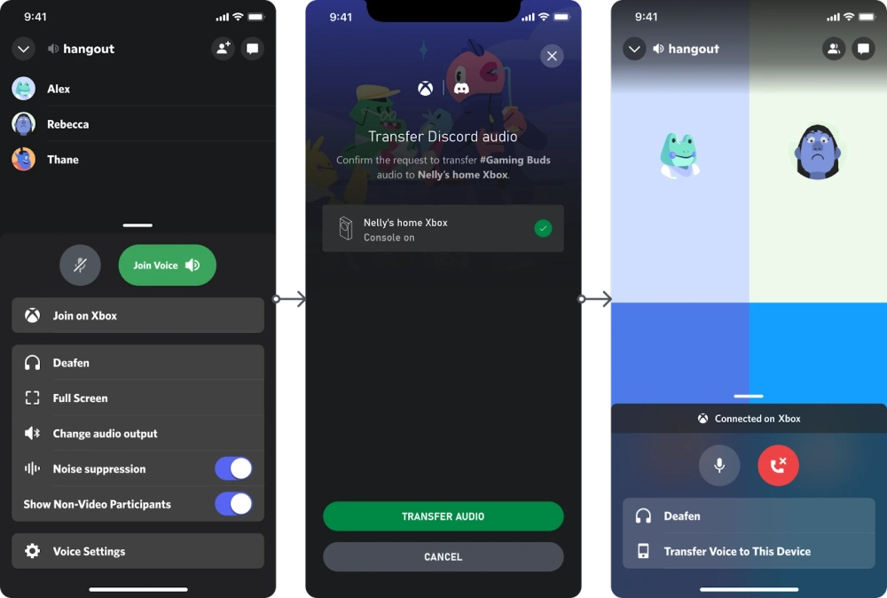 Далее потребуется мобильное приложение Xbox, которое должно быть привязано к консоли. В Discord необходимо войти в голосовой канал или созвониться с собеседником, а в мобильном приложении Xbox нужно выбрать «Перенести аудио», после чего звонок перейдёт на консоль.