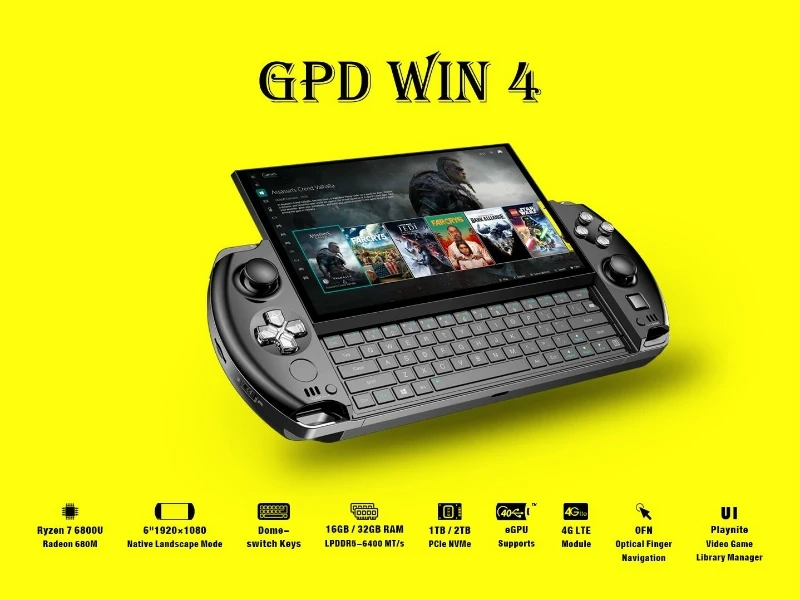 Компания GPD представила новый портативный ПК под названием Win 4. Новинка внешне напоминает Sony PSP, а поставляется с процессором Ryzen 7 6800U и видеокартой Radeon 680M.