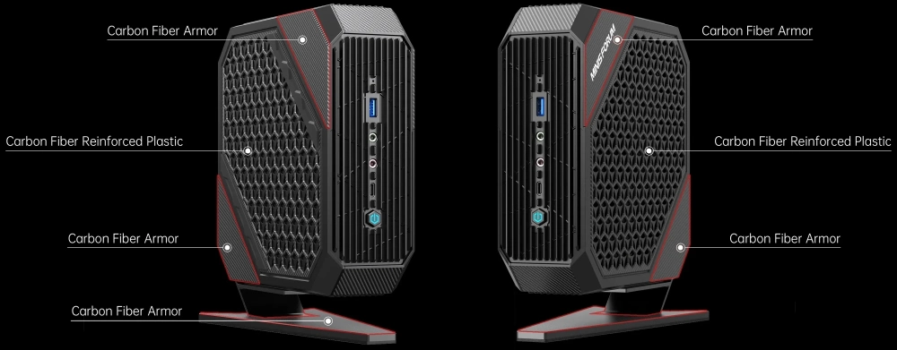Основа компьютера — 8-ядерный процессор Ryzen 9 5900HX (Zen 3), работающий на частоте до 4,6 ГГц. За обработку графики отвечает видеокарта Radeon RX 6600M (RDNA 2) с 8 ГБ видеопамяти GDDR6. HX90G поддерживает до четырёх независимых дисплеев с разрешением 4K при 60 Гц.