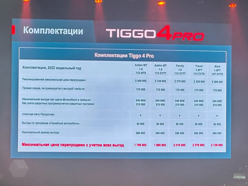 В Москве прошла презентация городского кроссовера Chery Tiggo 4 Pro. Стоимость в России стартует с отметки 2 млн, но с учётом скидок эта цена может снизиться до 1,78 млн рублей.