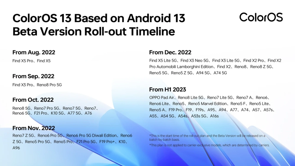 Начиная с 2023 года ColorOS 13 будет выпущена ещё для 20 устройств.