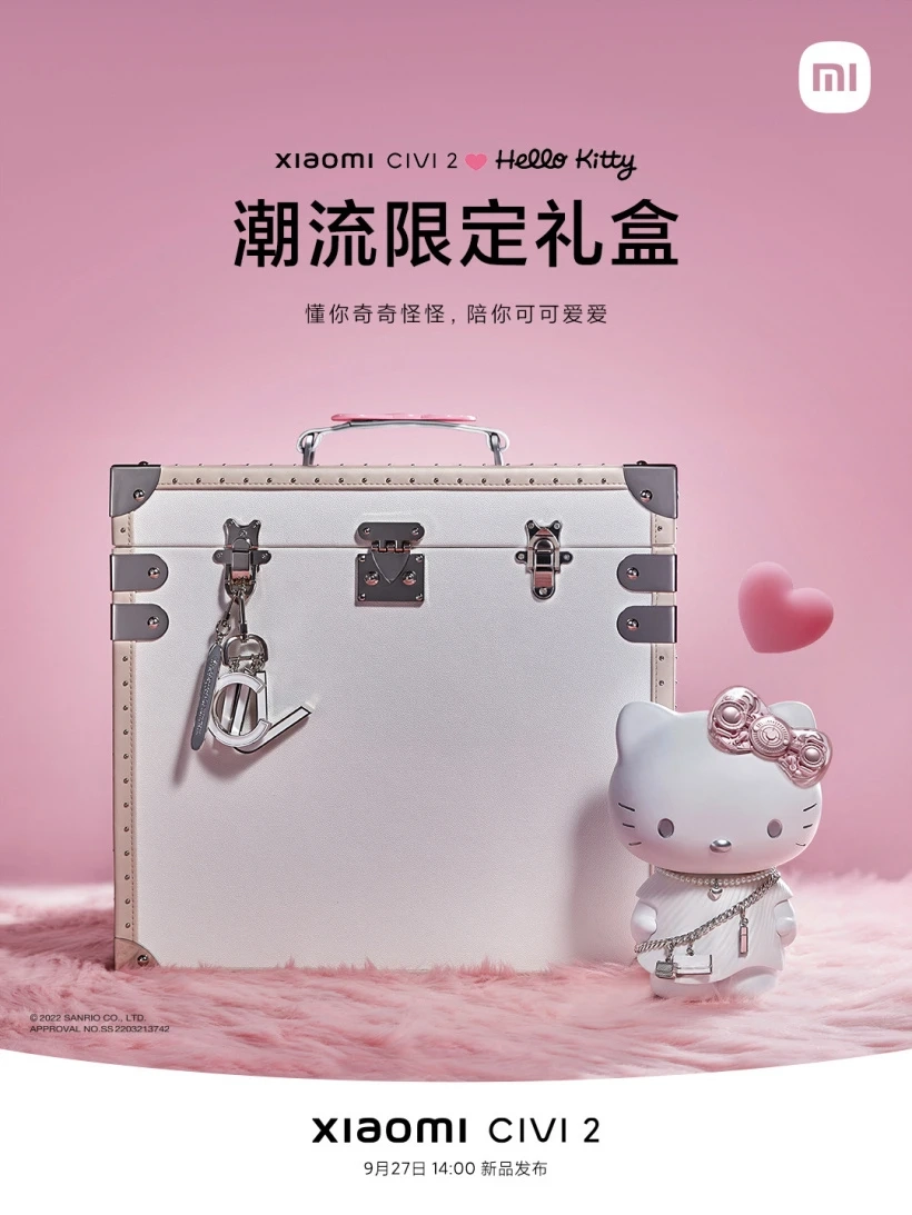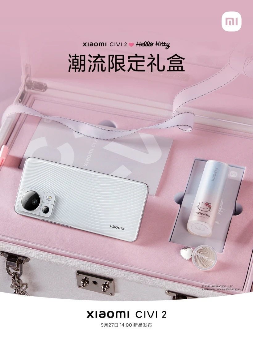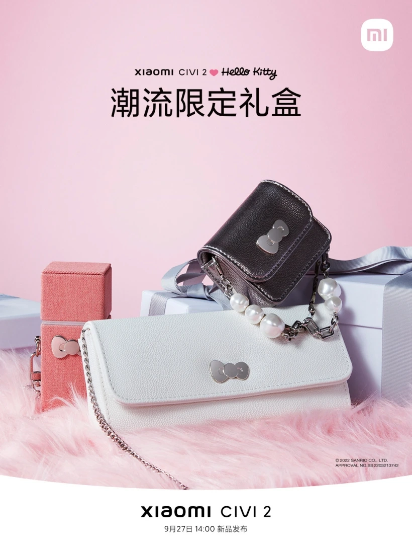 Компания Xiaomi показала, как будет выглядеть тематический набор по мотивам Hello Kitty со смартфоном Civi 2, который представят 27 сентября.