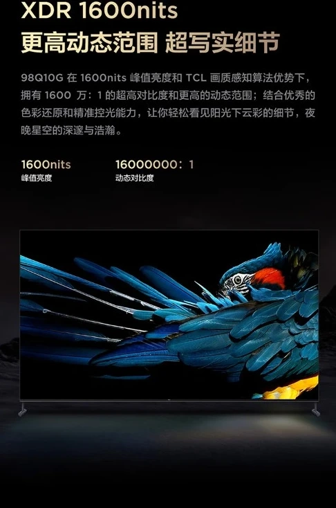 Компания TCL выпустила новый 98-дюймовый телевизор Q10G miniLED. Сообщается, что яркость панели достигает значения в 1600 нит.