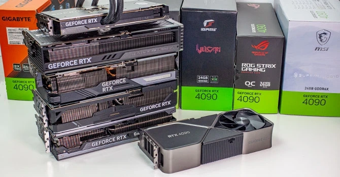 Размеры GeForce RTX 4090 зависят от конкретного производителя. На фото новая карта в дизайне от самой Nvidia выглядит чуть массивнее консоли Xbox Series S. Также карта выделяется своей толщиной.