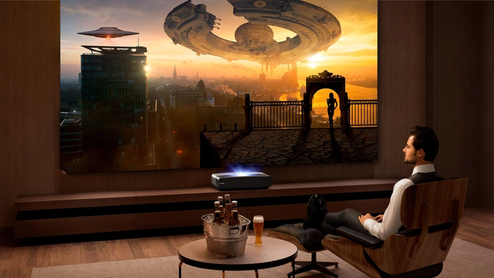 Телевизоры серий L5G и L9G оснащены 100- и 120-дюймовыми ALR-экранами, которые блокируют более 85% внешней засветки. Это позволяет сохранять качество картинки при любом освещении. Проекционная консоль может быть установлена в любом месте, так как минимальное расстояние между экраном и проектором составляет 30,3 см.