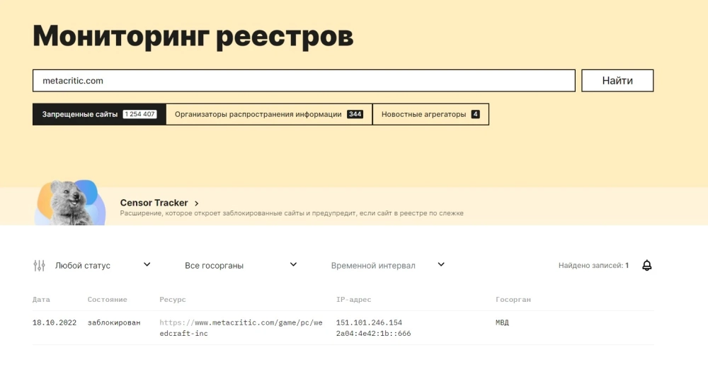 Роскомнадзор заблокировал Metacritic
