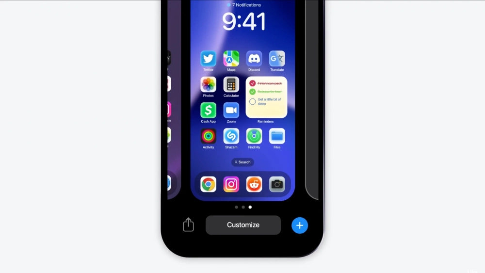 По представлению автора, iOS 17 получит переработанный рабочий стол. Приложения получат новые иконки, а виджеты станут кликабельными — например, в виджете списка задач можно отмечать выполненные пункты без перехода в приложение. Пользователю предлагается возможность создания нескольких главных экранов и простого переключения между ними. А ещё можно поделиться главным экраном в iMessage — чтобы друг смог применить его у себя в один клик.