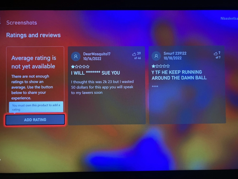 Разработчики Nbasketball 23 использовали для оформления страницы в магазине официальные арты NBA 2K23, чем и ввели в заблуждение пользователей. Перед тем, как Microsoft удалила тайтл из магазина, его успели купить несколько человек, один из которых просто остался недоволен геймплеем, а другой пригрозил авторам подделки подать на них в суд.