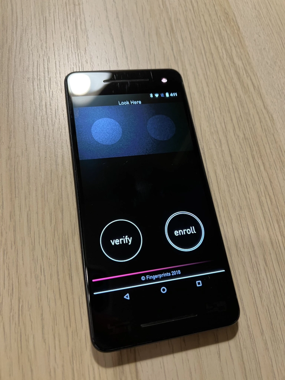 Инфракрасный сканер в прототипе заменяет собой обычную фронтальную камеру Pixel 2. Предполагается, что с его помощью тестировалась функция распознавания радужной оболочки глаза для аутентификации пользователя. В прошивку прототипа вшито приложение IrisDemo, которое позволяет «зарегистрировать» радужные оболочки и отсканировать их для проверки на совпадение ранее внесённым данным.