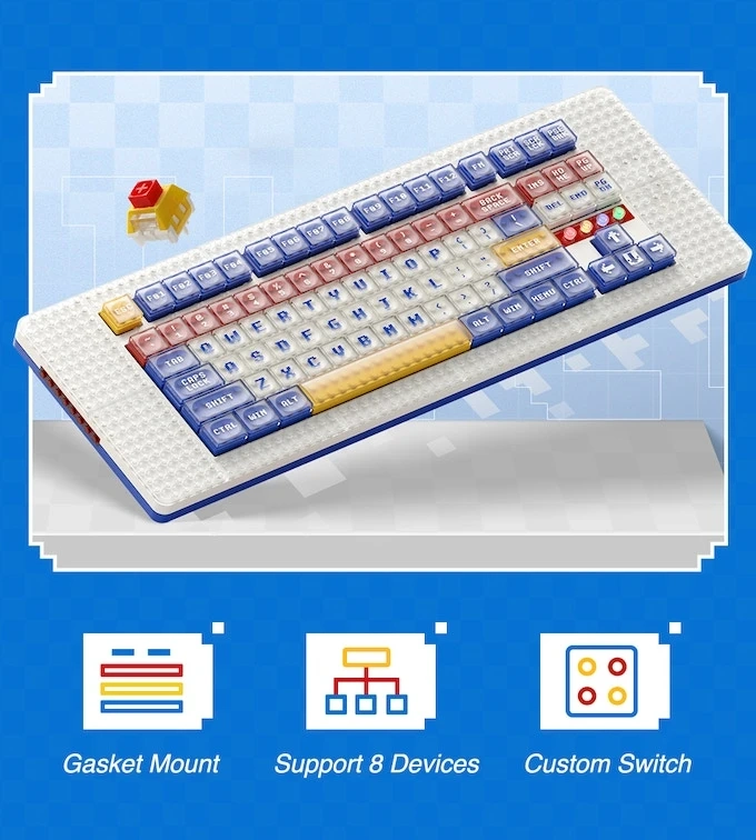 У Pixel можно заменить почти все элементы, включая колпачки и переключатели. Заднюю панель можно превратить в своеобразное художественное полотно. Устройство оснащено RGB-подсветкой, а также поддерживает работу по проводу (его можно отсоединить), Bluetooth и через USB-донгл. Таким образом, клавиатуру можно использовать даже в паре со смартфоном.