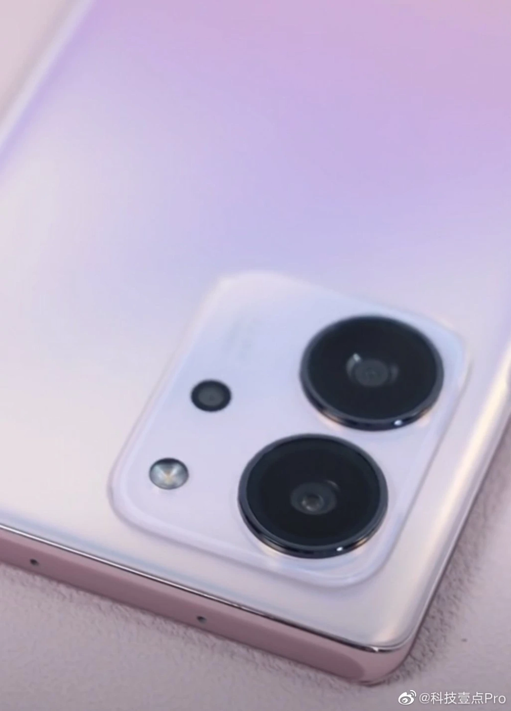 На передней части смартфона установлен экран с закруглёнными краями и двойным вырезом под передние камеры в духе Xiaomi Civi 2 или iPhone 14 Pro.