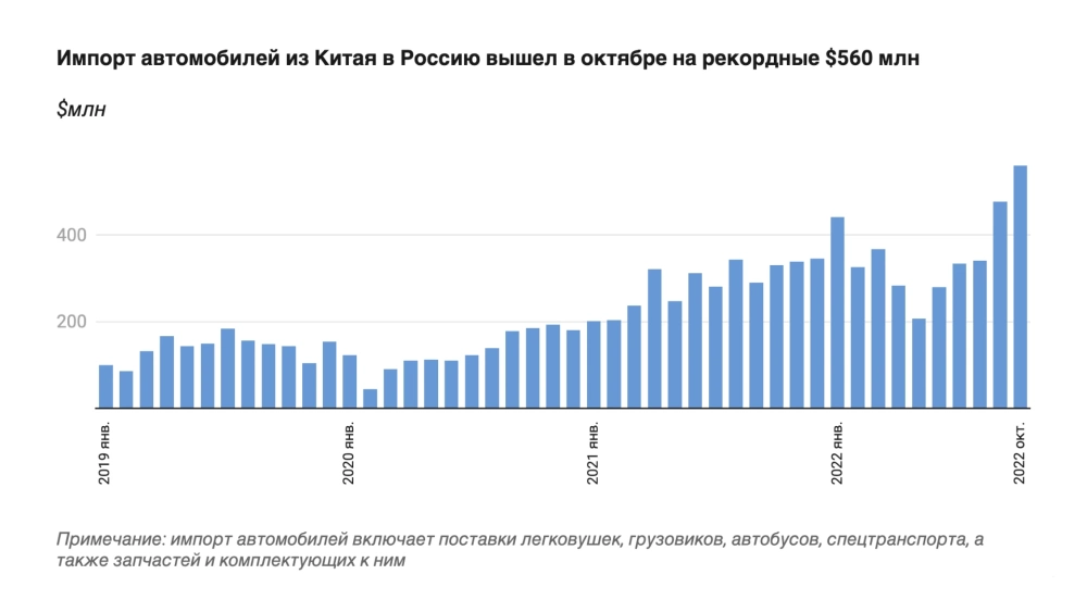 Суммарно ввезено транспорта на 560 млн долларов — это рекордный показатель за всю историю.
